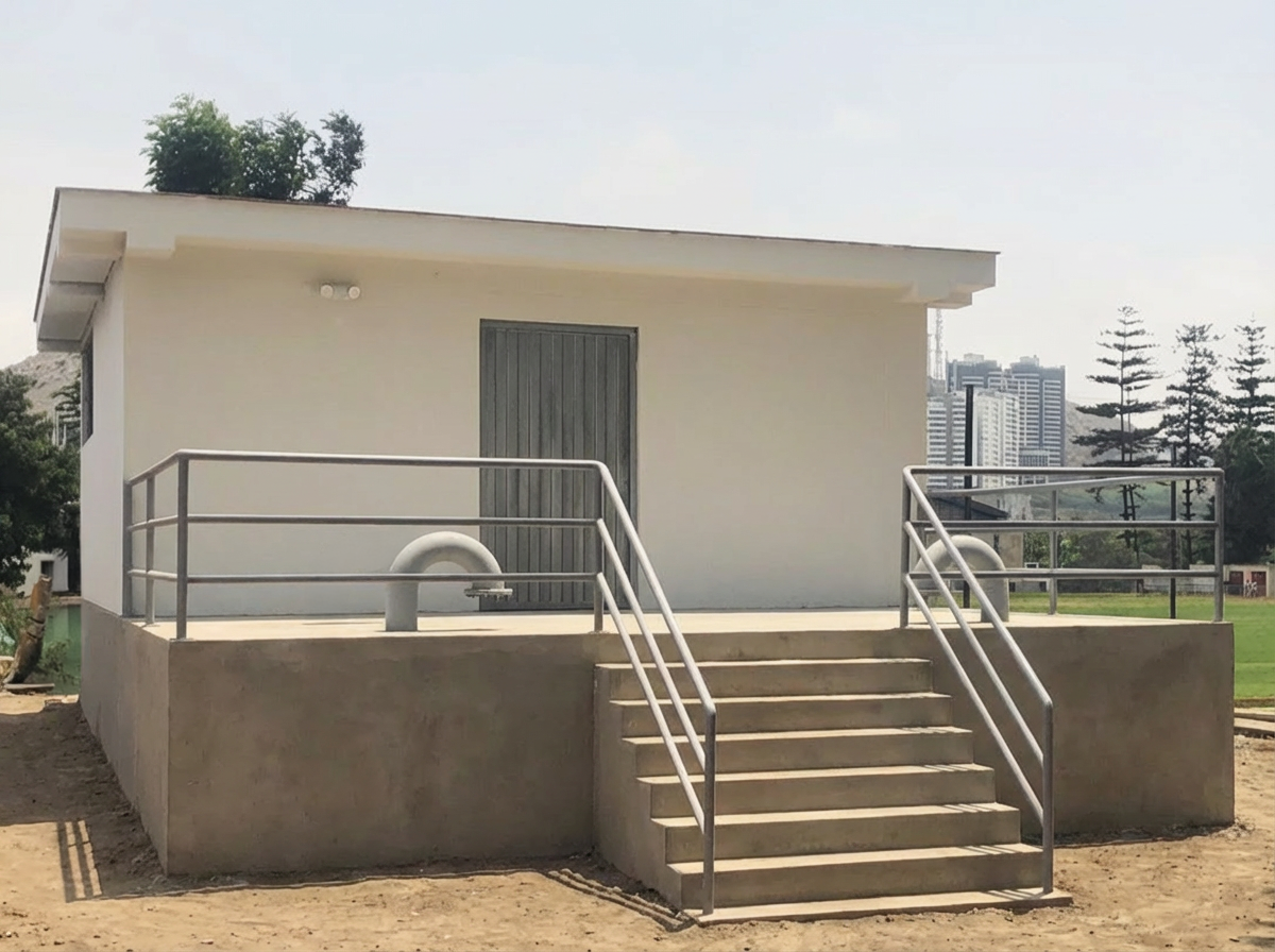 Se ejecutó excavación profunda, cimentación reforzada, muros y losas de concreto armado para cisterna de 250 m³. Se implementó caseta técnica con tres motores de succión, electroválvulas, válvulas reguladoras, sensores electrónicos y válvulas de alivio. El sistema fue calibrado para presión constante en la red interna. La obra contó con supervisión técnica continua, cronograma detallado, pruebas hidráulicas, documentación técnica y control de seguridad conforme a normativa vigente. La plataforma elevada de concreto armado funciona como basamento estructural de la caseta técnica.