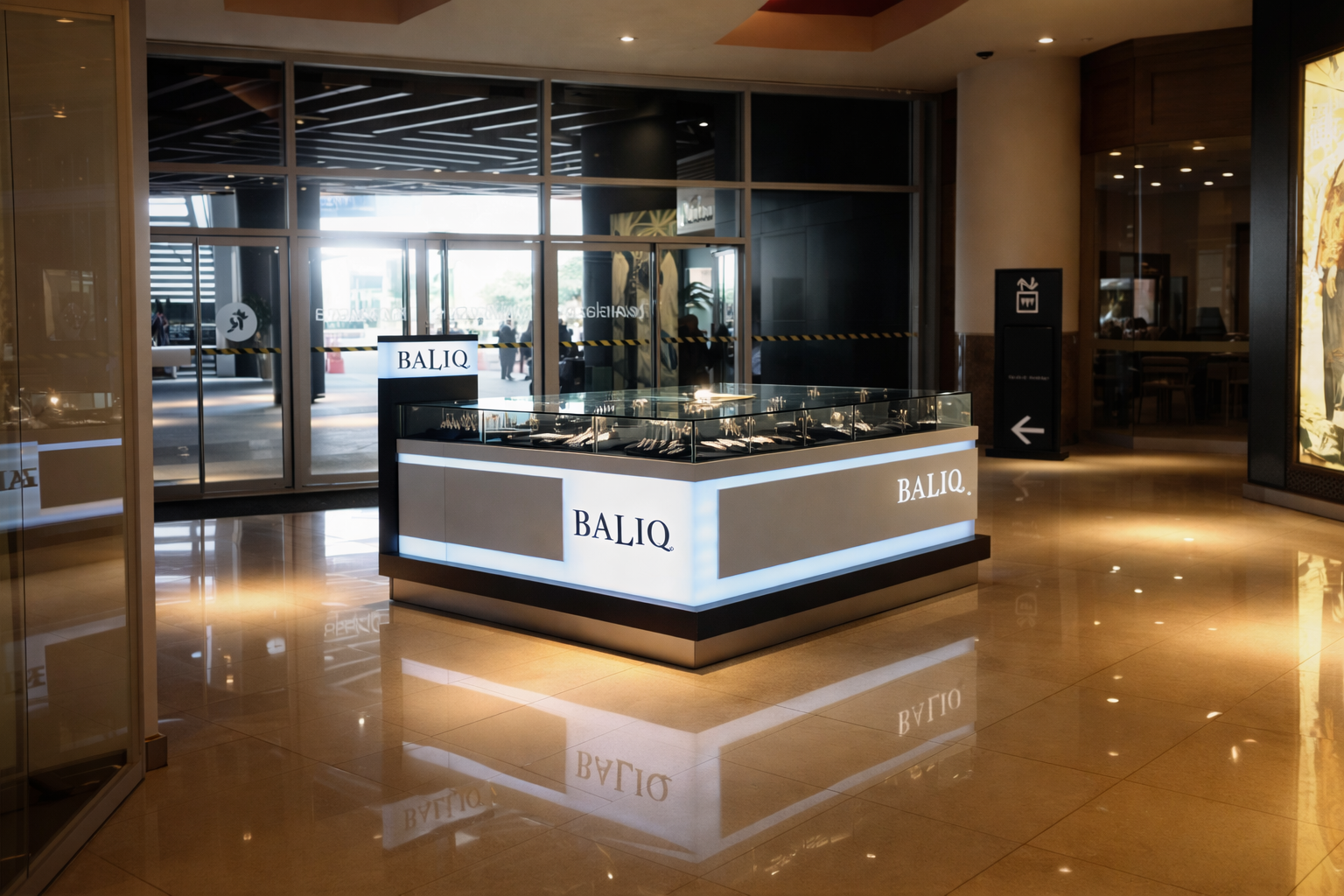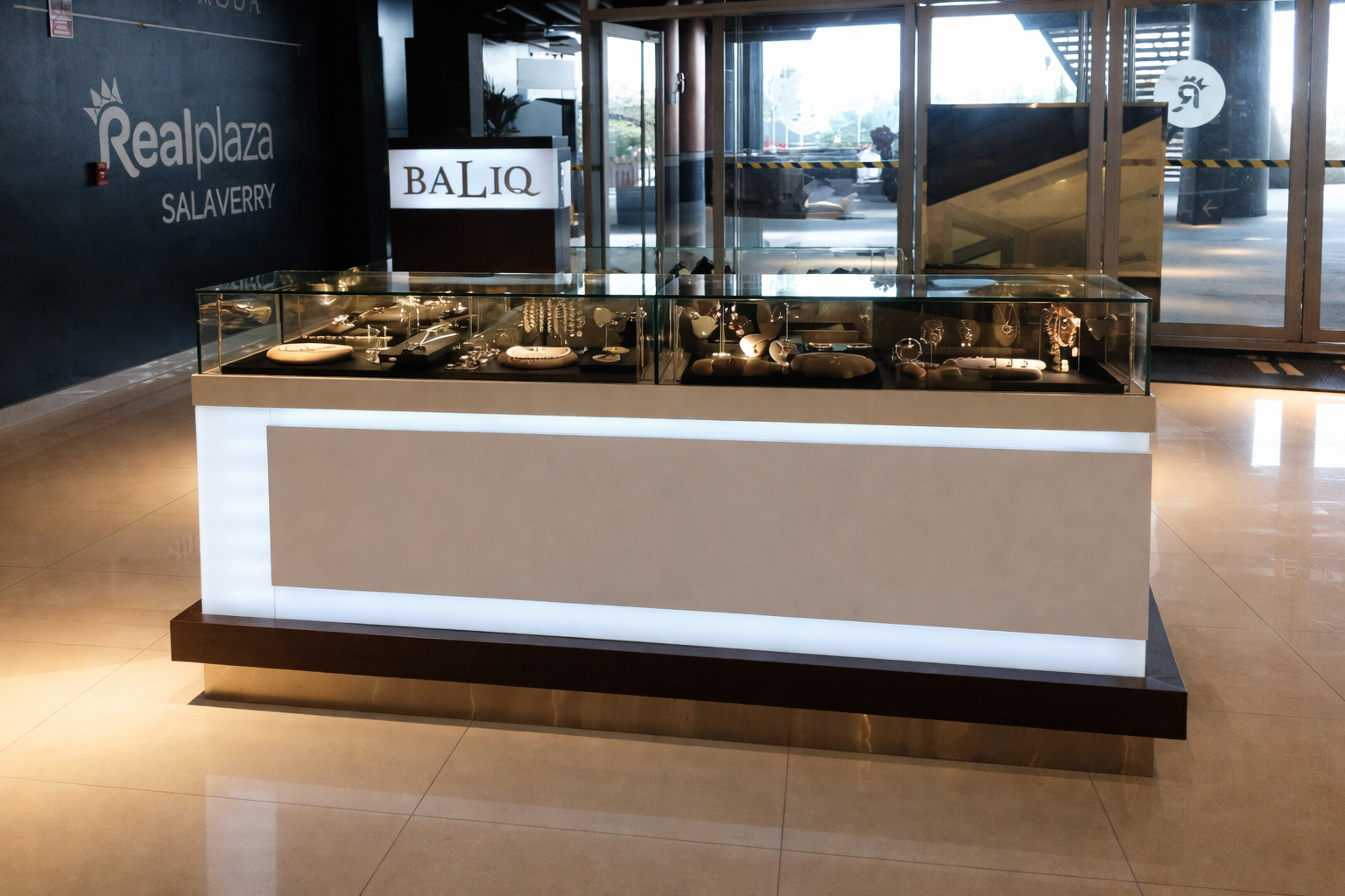 El encargo consistió en el diseño, fabricación e implementación de un módulo isla de exhibición para joyería dentro del mall Real Plaza Salaverry, optimizado para un entorno de alto tránsito y máxima visibilidad comercial. Previo a la ejecución se realizó un diagnóstico técnico del espacio, analizando flujos peatonales, visuales desde distintos ángulos, iluminación existente y requerimientos operativos del cliente. BALIQ buscaba un módulo elegante, seguro y funcional que transmitiera exclusividad y confianza, con especial interés en la calidad de acabados, la iluminación de vitrinas y el orden del sistema de exhibición. Para identificar y anticipar sus necesidades se trabajó con un briefing detallado, referencias visuales y validaciones técnicas. La propuesta y presupuesto se entregaron en un plazo corto, con metrados claros, especificaciones técnicas y alcances definidos, asegurando viabilidad constructiva y control de costos desde el inicio.