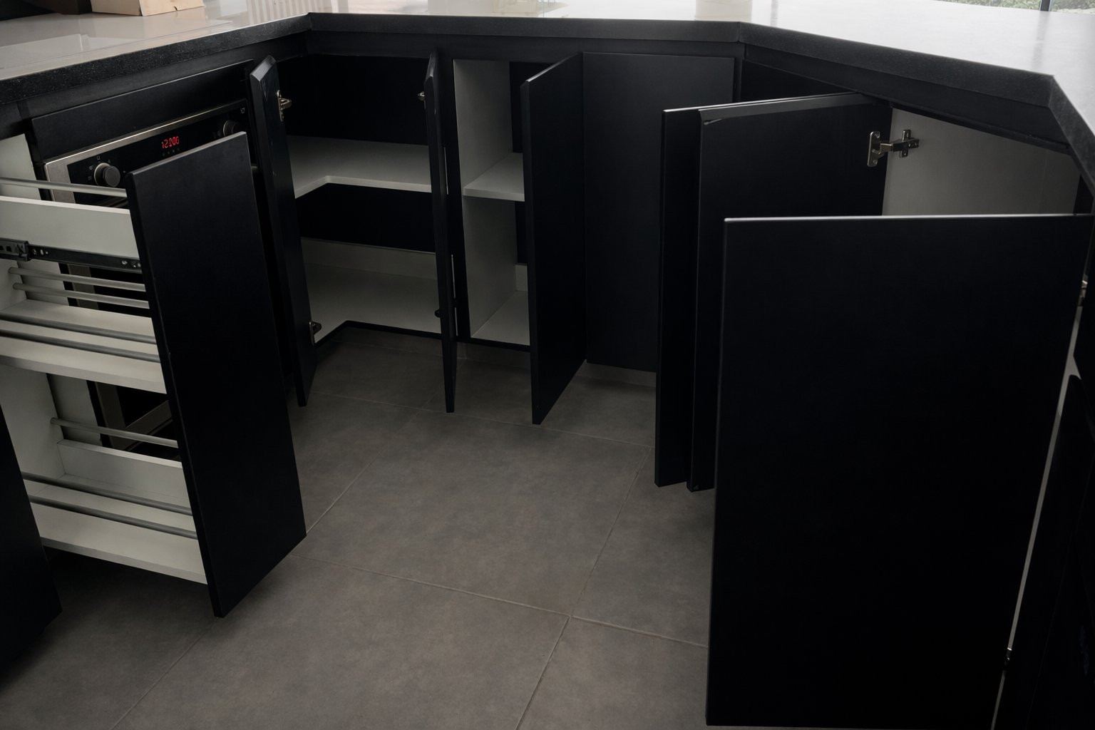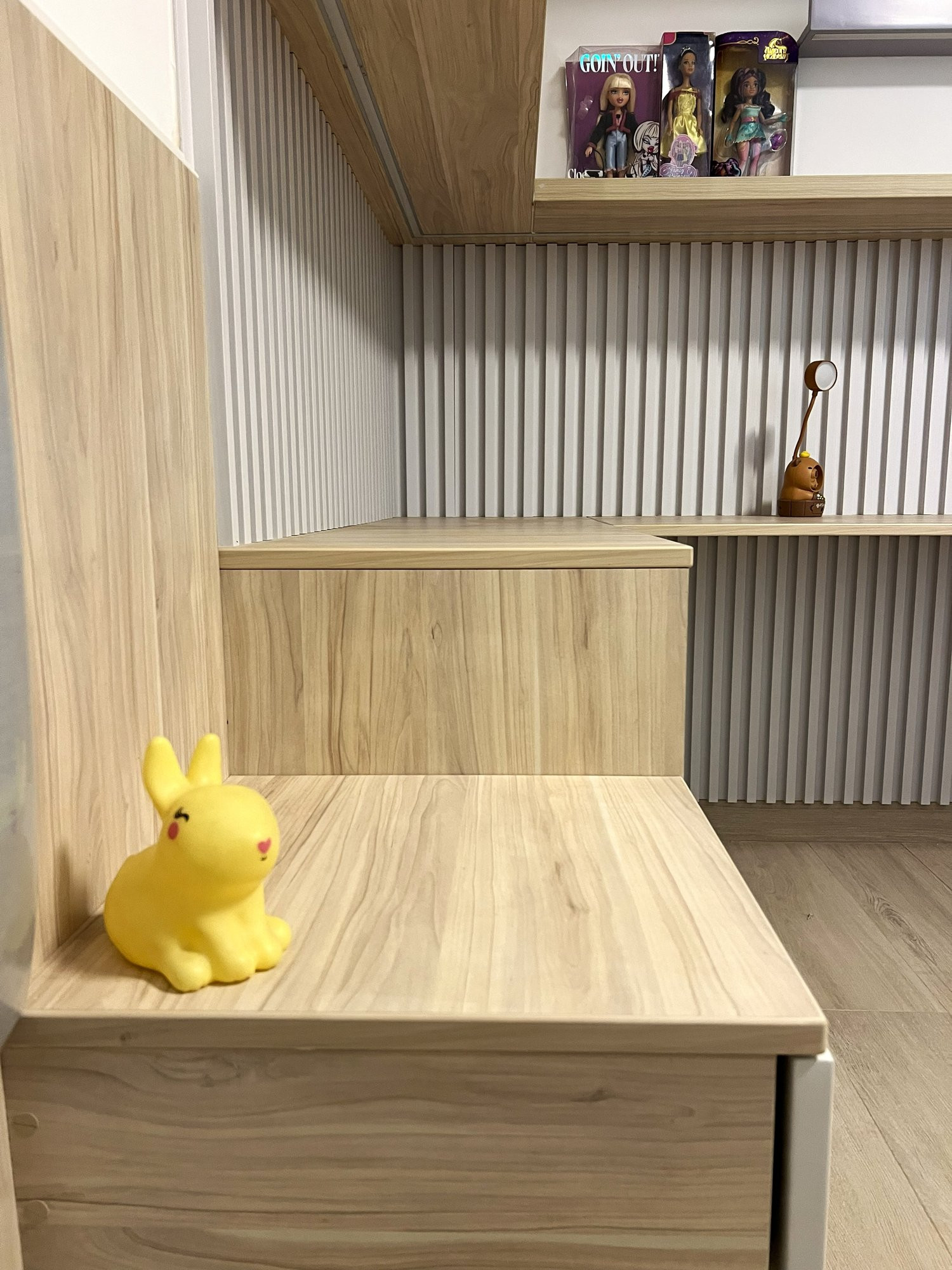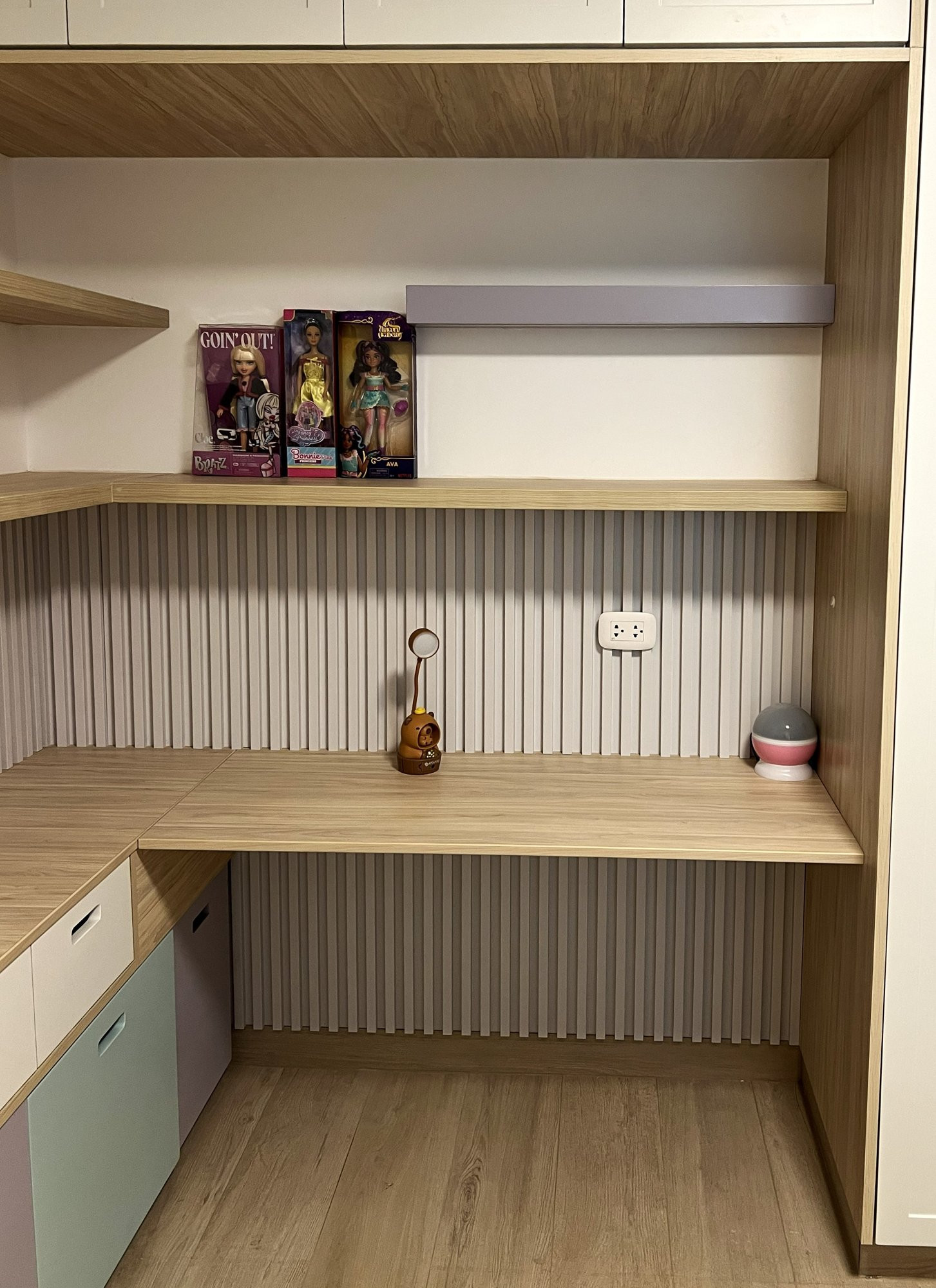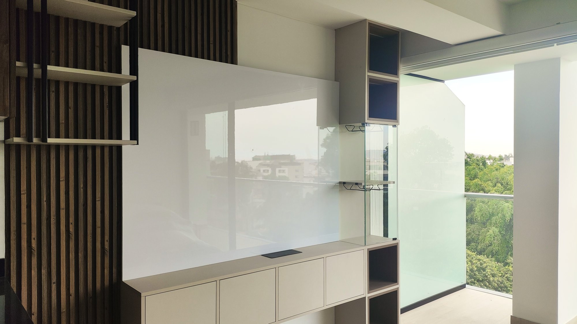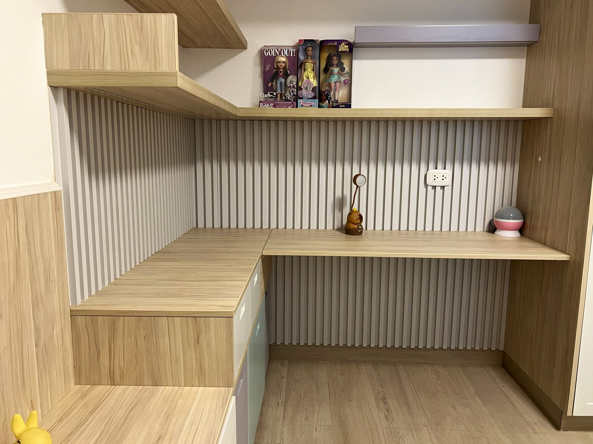 La ejecución incluyó la implementación de cocina con barra en granito negro, pintura y microcemento texturado, mobiliario completo en sala, dormitorios y baños, así como soluciones personalizadas las habitaciones. Diseño de habitación de niño con tapizado, escritorio integrado y cabecera. Se trabajó con un equipo técnico especializado en carpintería, acabados y supervisión de obra, utilizando cronogramas, valorizaciones y control constante.