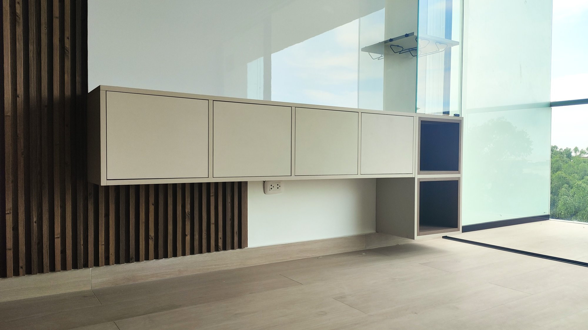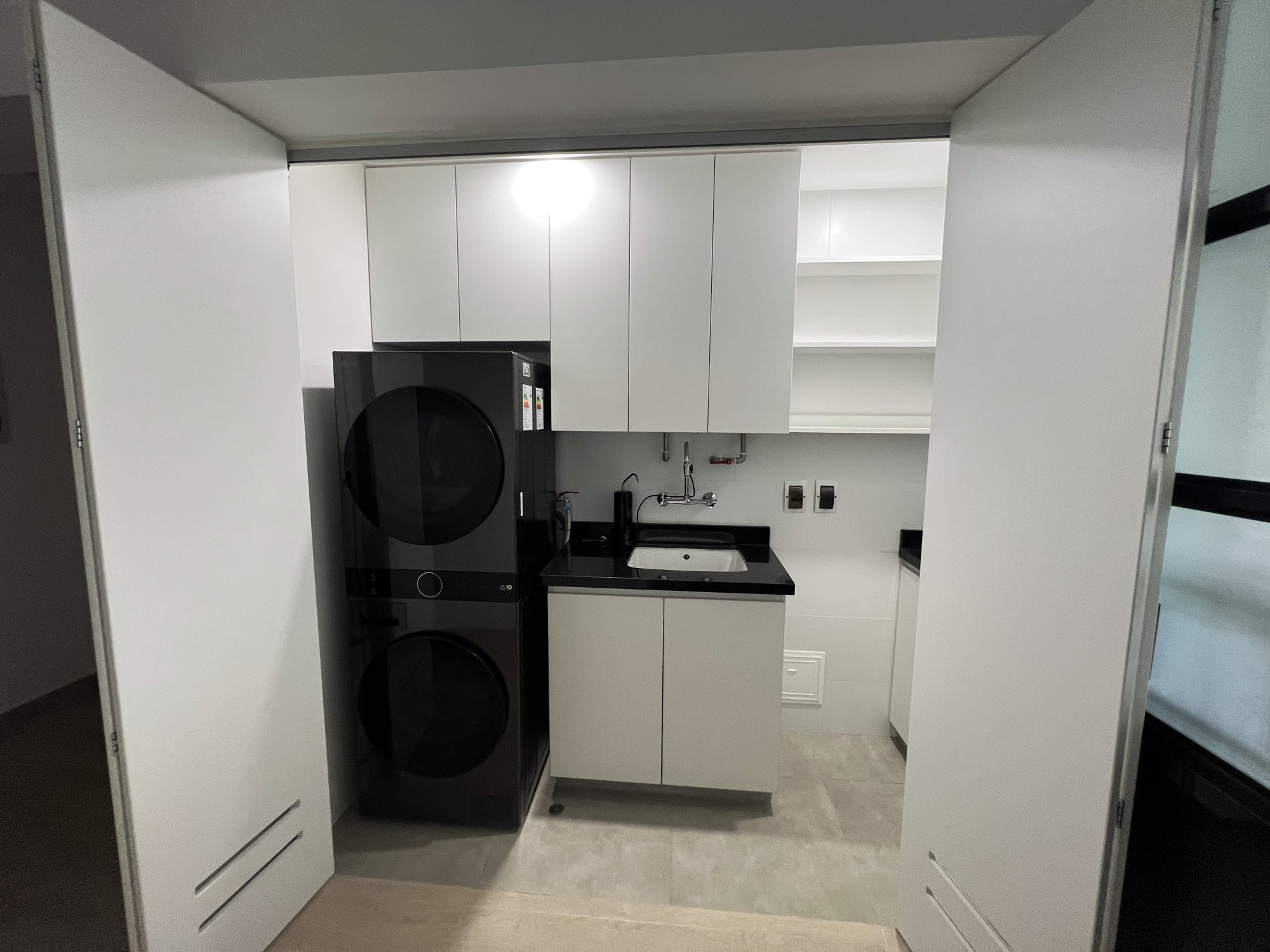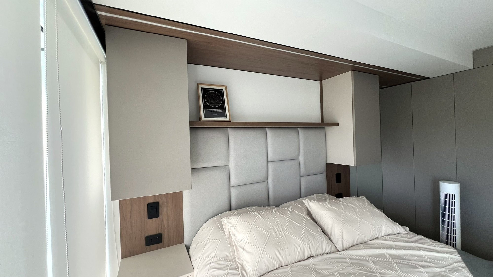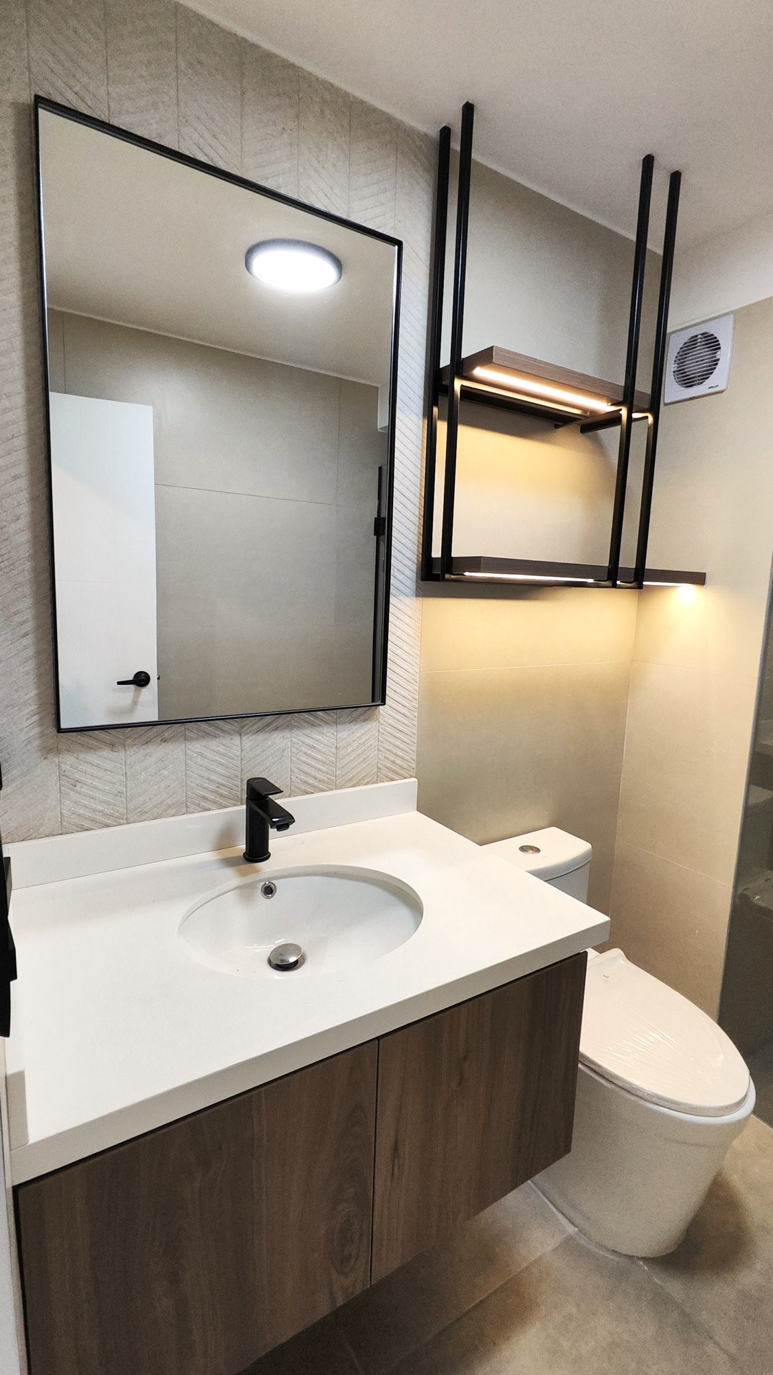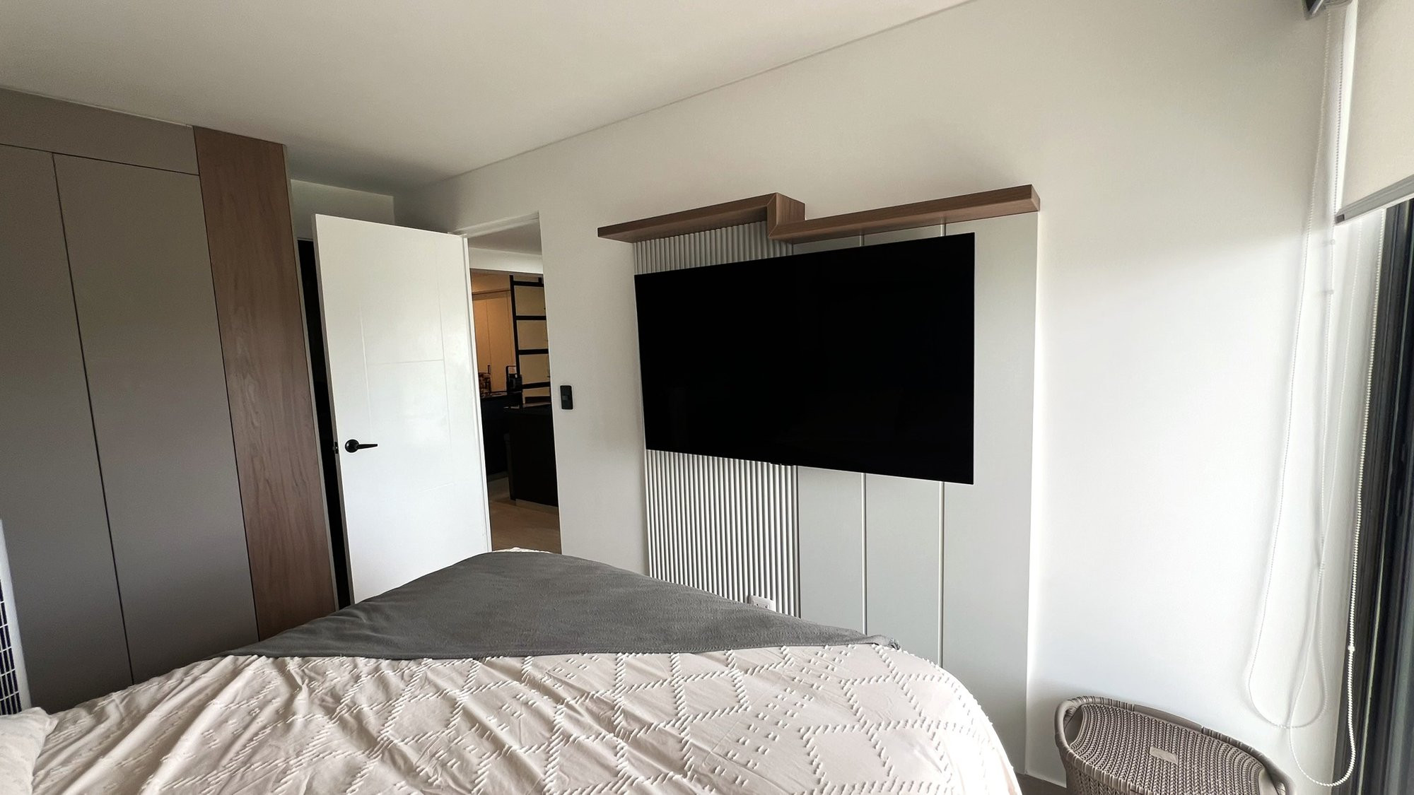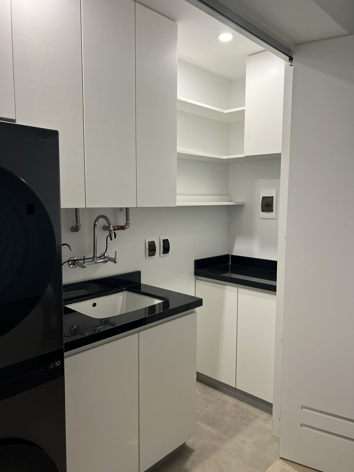 El proyecto se planteó como una intervención integral con enfoque en diseño funcional y alto valor estético, incorporando mobiliario en melamina, MDF pintado en poliuretano, granito negro y acabados como microcemento texturado y pintura. El valor añadido se centró en maximizar cada metro cuadrado mediante soluciones a medida, modificación de closets para implementar nuevos muebles a pedido del cliente, integración de iluminación y acabados según gustos del cliente.