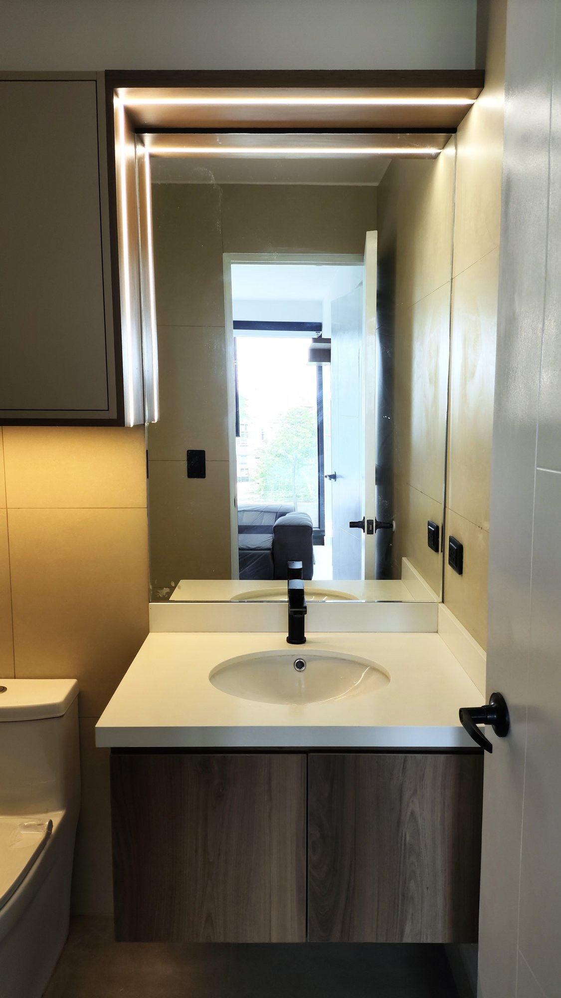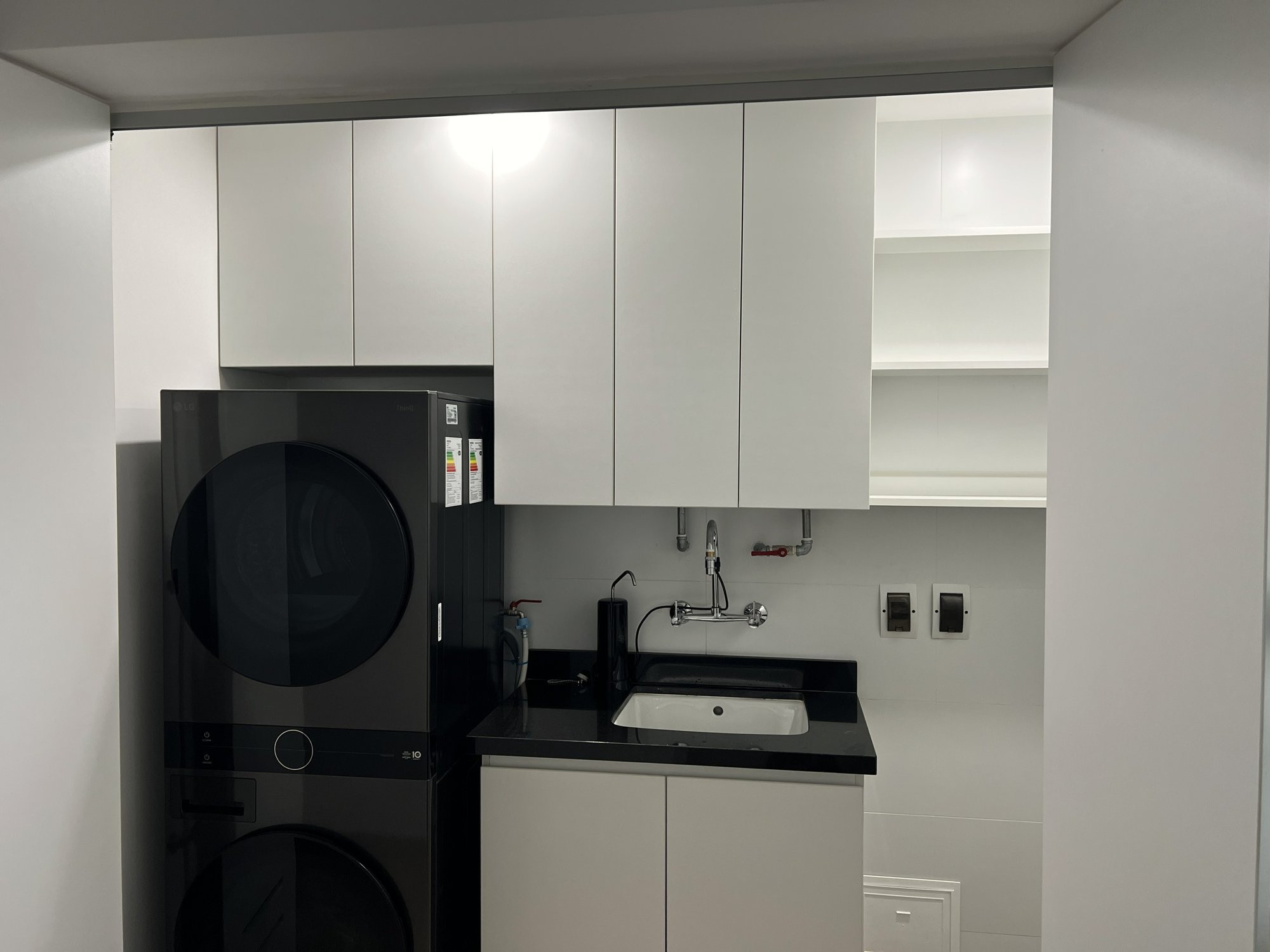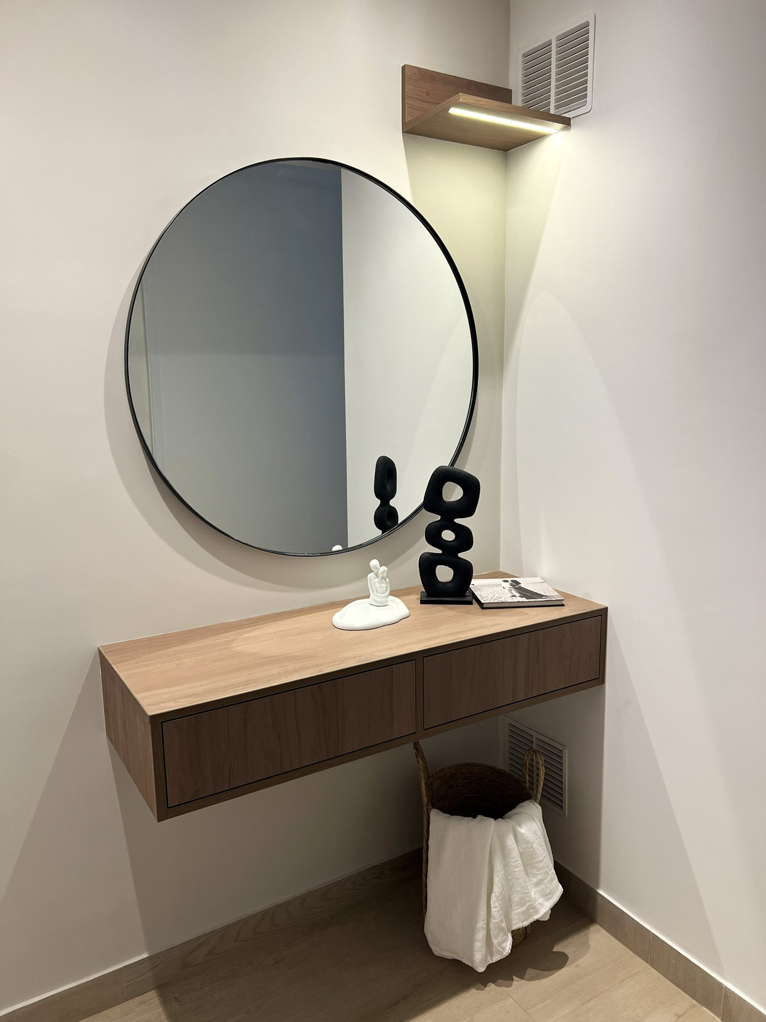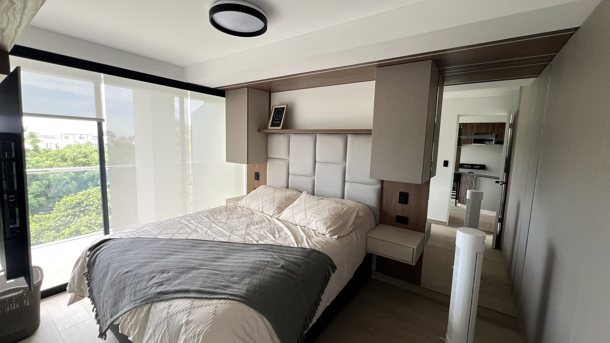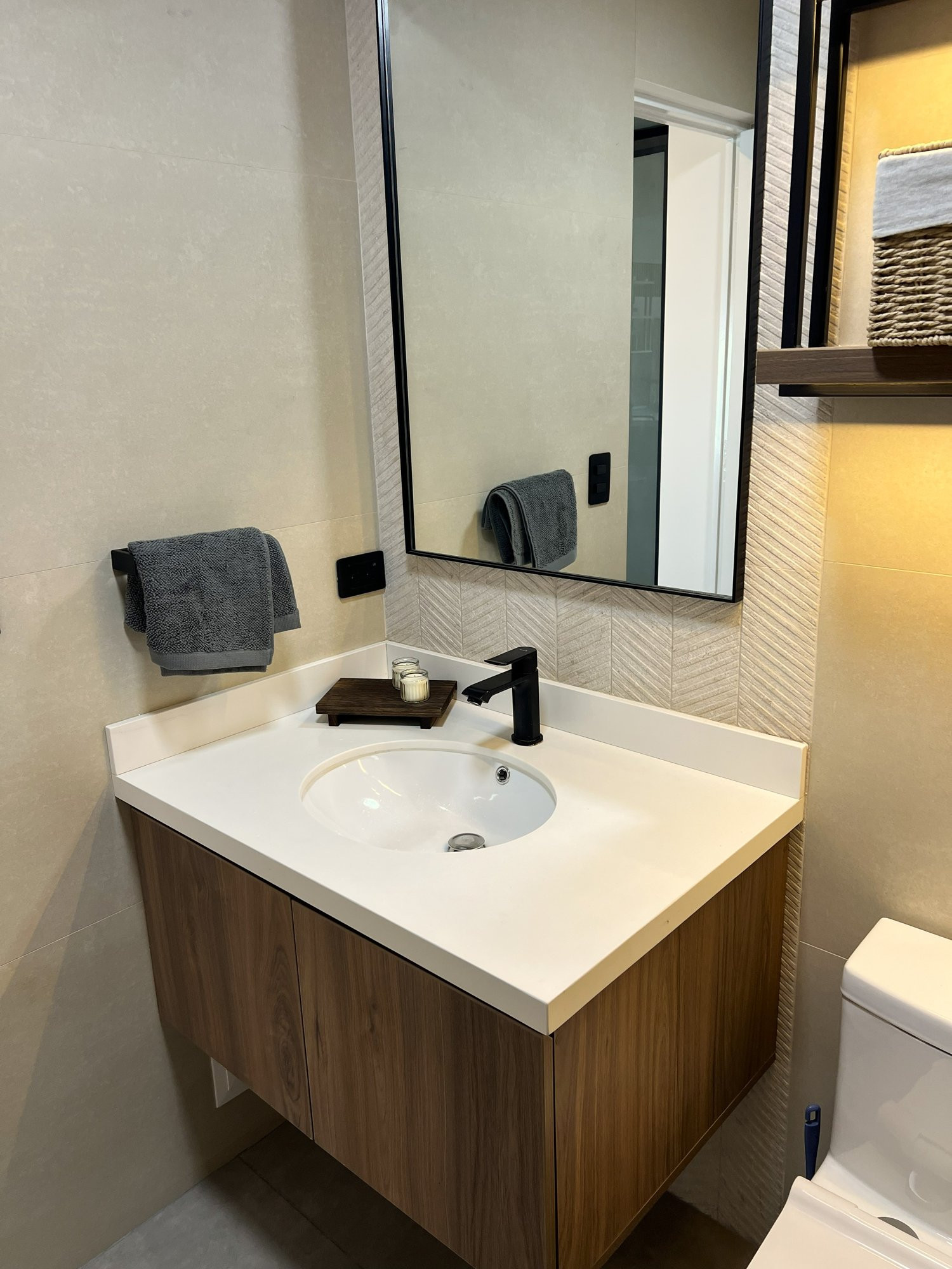 El proyecto se planteó como una intervención integral con enfoque en diseño funcional y alto valor estético, incorporando mobiliario en melamina, MDF pintado en poliuretano, granito negro y acabados como microcemento texturado y pintura. El valor añadido se centró en maximizar cada metro cuadrado mediante soluciones a medida, modificación de closets para implementar nuevos muebles a pedido del cliente, integración de iluminación y acabados según gustos del cliente.