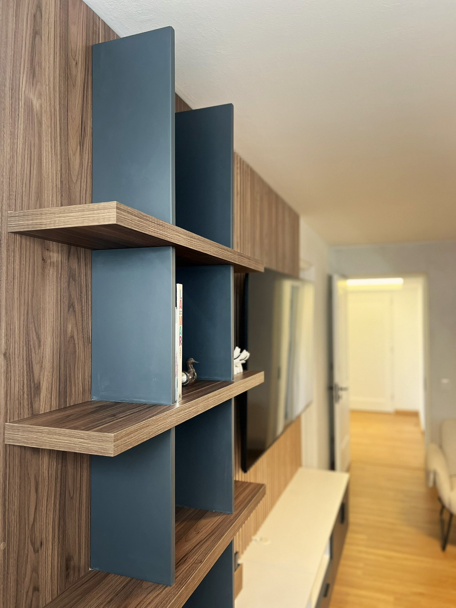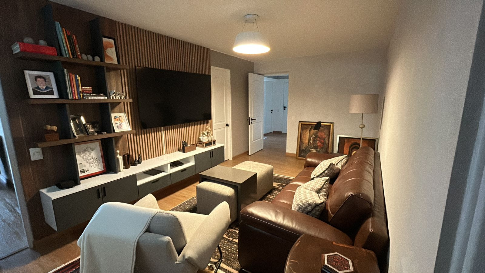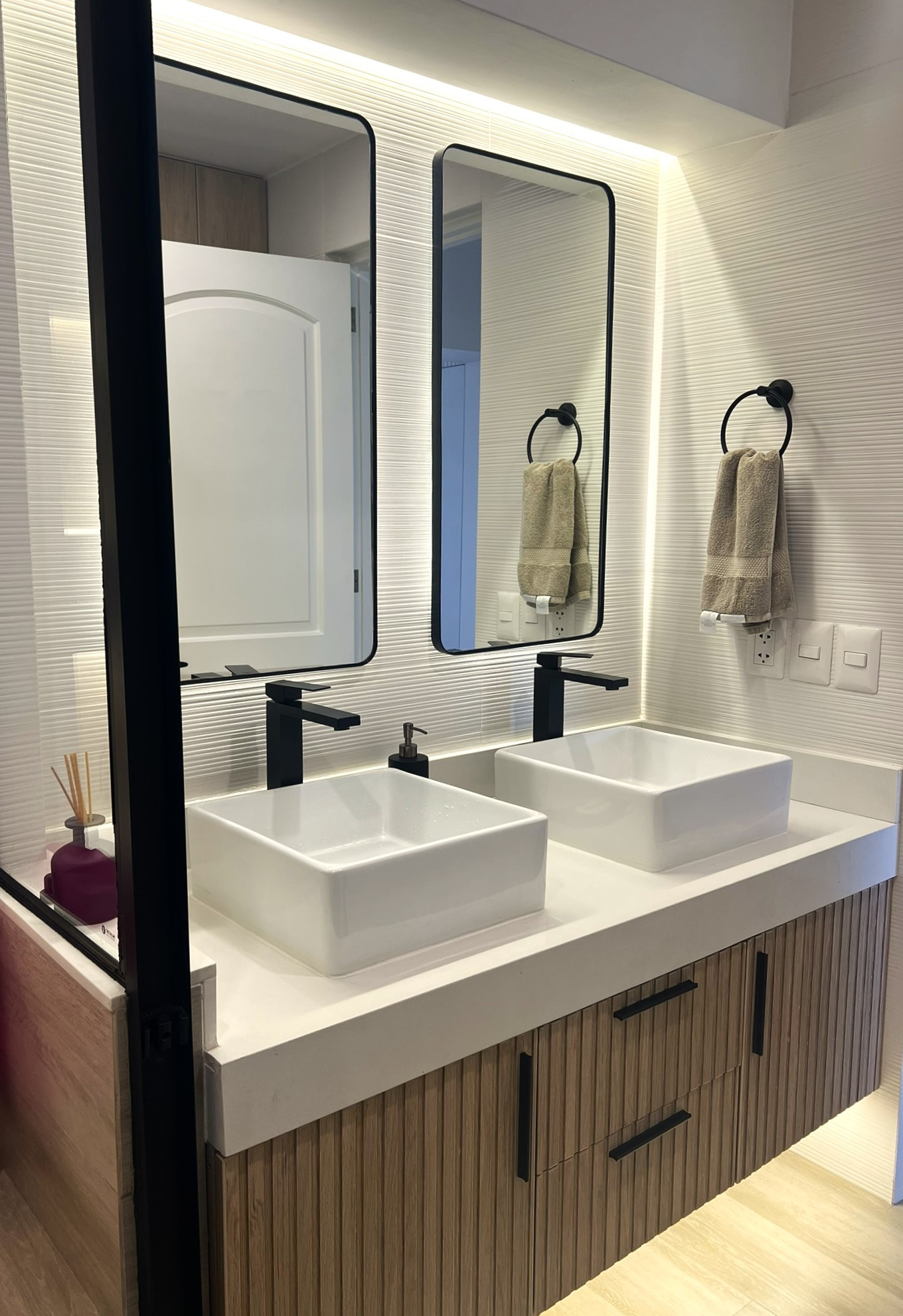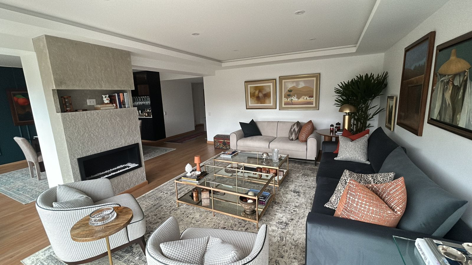 El proyecto incluyó la instalación de porcelanatos, enchapes y grifería moderna en baños, así como la fabricación de muebles a medida en melamina y MDF pintado, garantizando funcionalidad y durabilidad. Se ejecutaron trabajos de pintura, tapicería, instalación de accesorios, mejoras eléctricas menores y el revestimiento de chimenea, logrando una remodelación integral con acabados contemporáneos. La correcta coordinación de obra y el control técnico permitieron una ejecución ordenada, adaptable a ajustes durante el proceso y alineada a estándares profesionales de diseño interior y construcción. Trabajar con la Sra. Grithis ha sido un placer, muchas gracias por la confianza y paciencia.